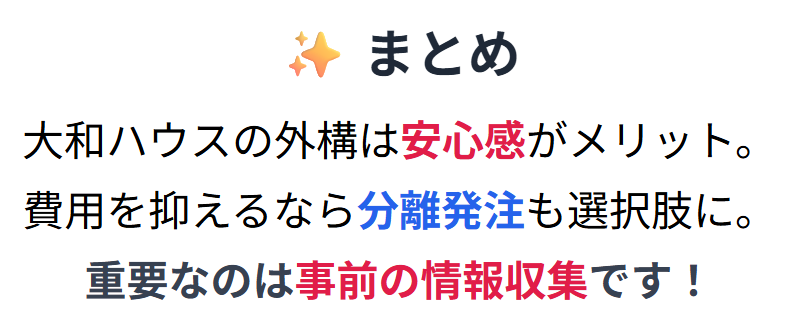「大和ハウス」は外構工事を自社で行わず、各地域の信頼できる外構専門業者に委託しているとされています。
