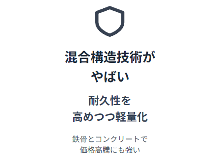 また、鉄骨とコンクリートを組み合わせて使うので、鋼材価格が値上がりしても建築費用が上がりづらいという長所もあります。