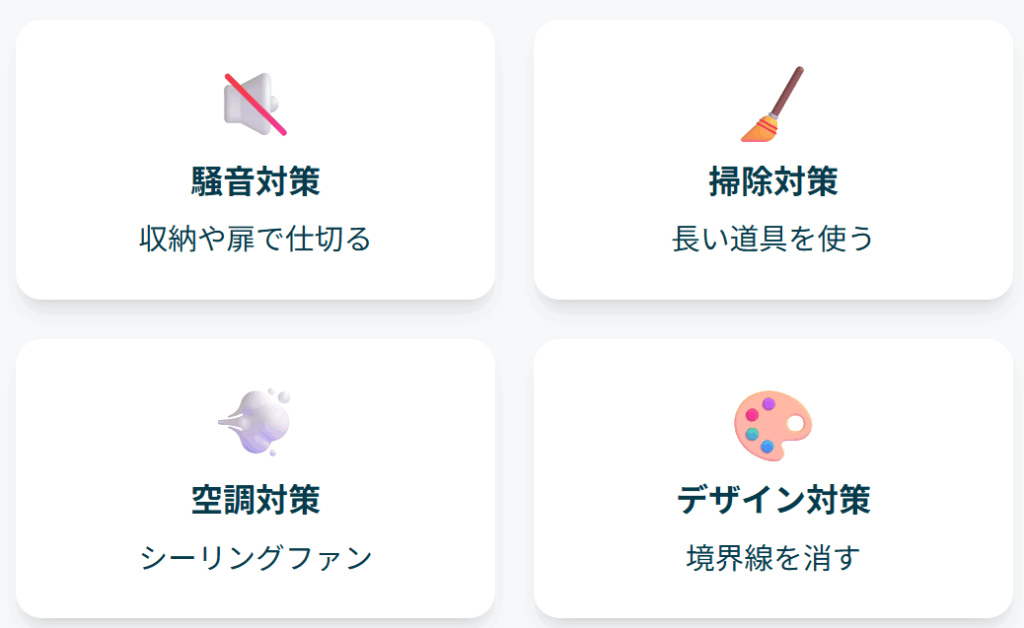 吹き抜けを設けることで伝わりやすくなる、音と臭いについての対策方法には以下のものがあります。
