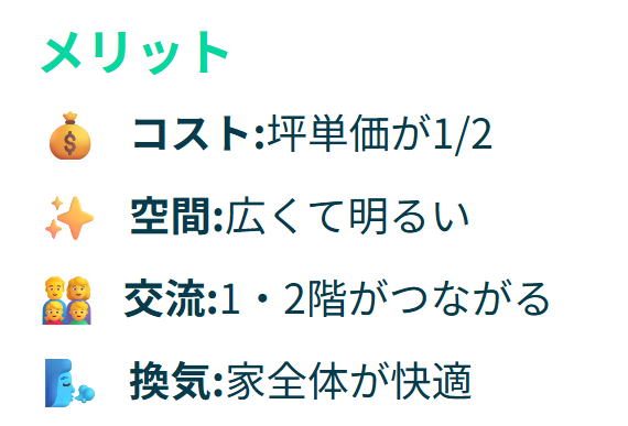 一方、吹き抜けを入れることで吹き抜け分の施工面積が1/2となり、住まいの本体価格を抑えられるのです。