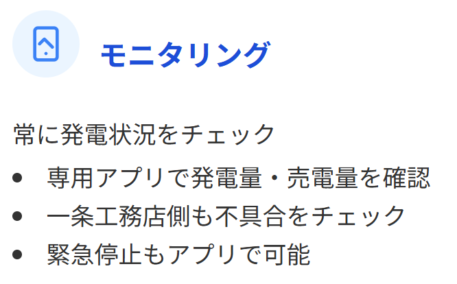 一条工務店の太陽光発電には、「太陽光発電モニタリングシステム」が搭載されています。