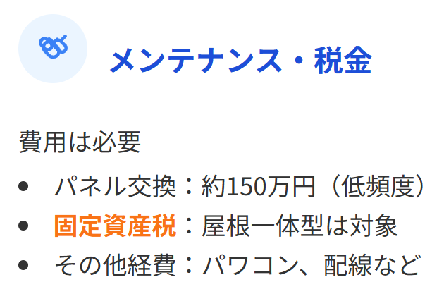 一条工務店の太陽光発電システムは屋根一体型のため、固定資産税が発生するのです。