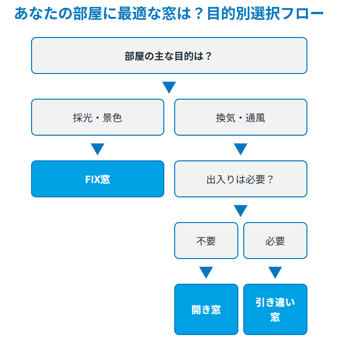 - 部屋の目的に合わせて窓を選ぶ