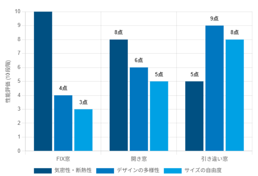 それぞれ気密性・断熱性・使い勝手に特徴があるので、「どの部屋に、どの種類を使うか」をイメージしながら読んでみてください。