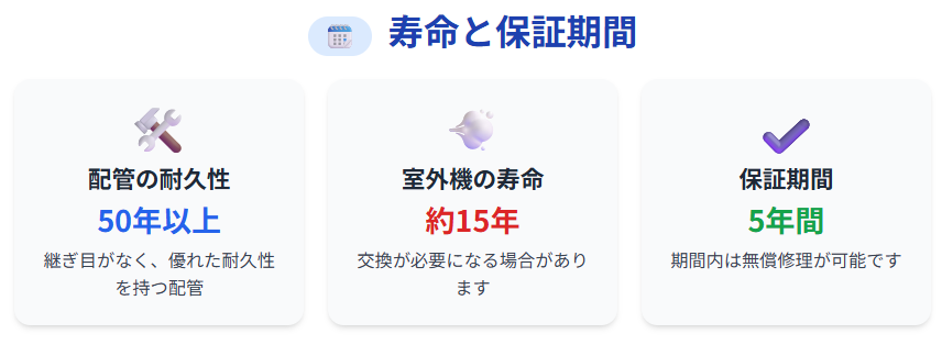 そのため、配管は50年以上の耐久性があると評価されています。