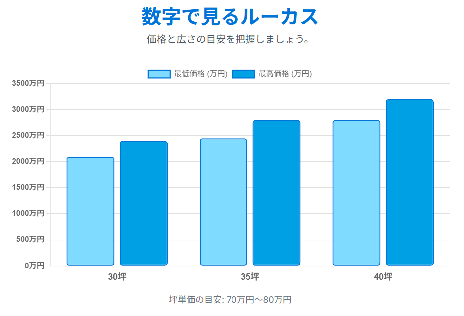 ルーカスの坪単価は、70~80万円程度です。