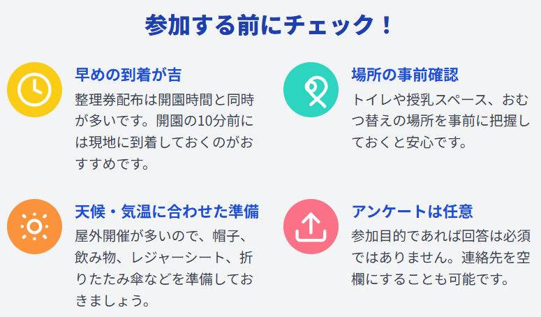無料で参加できる住宅展示場 のキャラクターショーをより安全・快適に楽しむための、実用的なポイントを以下にまとめました。