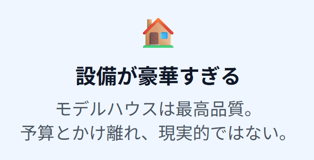 • 住宅展示場の設備は各メーカーの最高峰品質なので参考にならないから