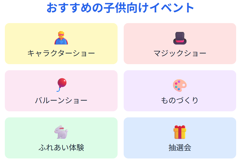 ここでは、子連れ来場者の人気や満足度が高い、おすすめのイベントを紹介します。
