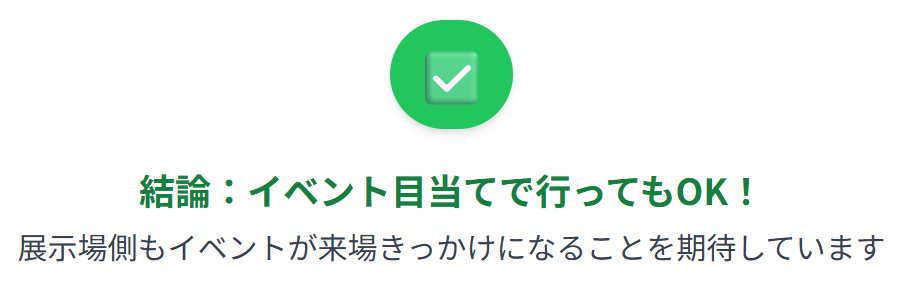 お目当てのイベントがあるかどうかは展示場の公式サイトなどで事前に確認しておきましょう。