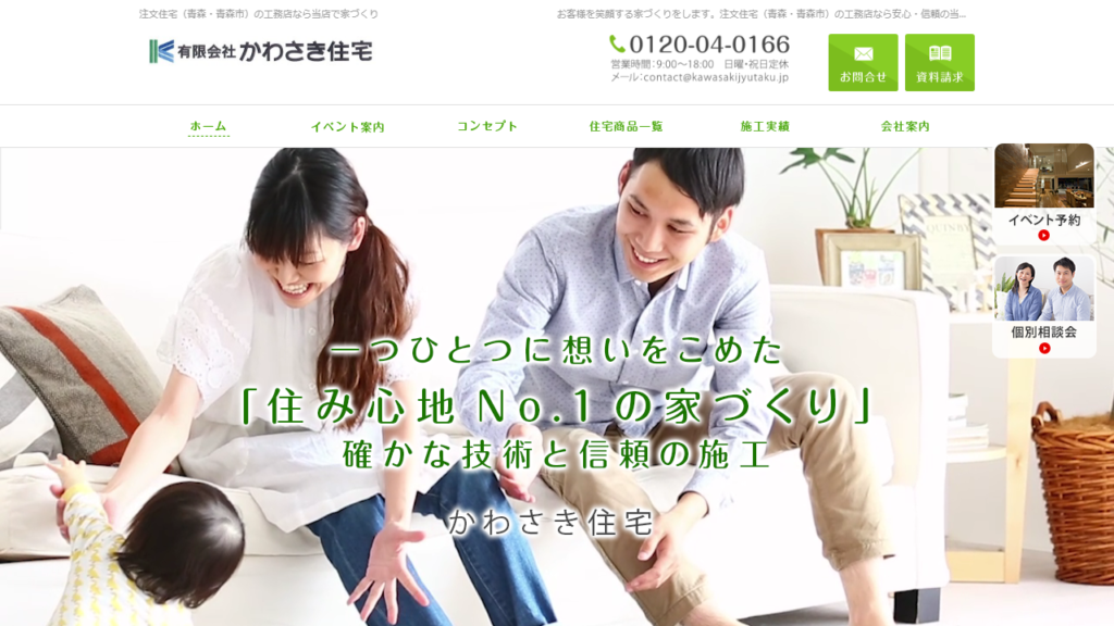 有限会社かわさき住宅は、1994年(平成6年)創業以来、青森市で住宅関連事業を営み続けている工務店。地元職人とともに「家族の笑顔をつくる家づくり」をモットーに活動しています。