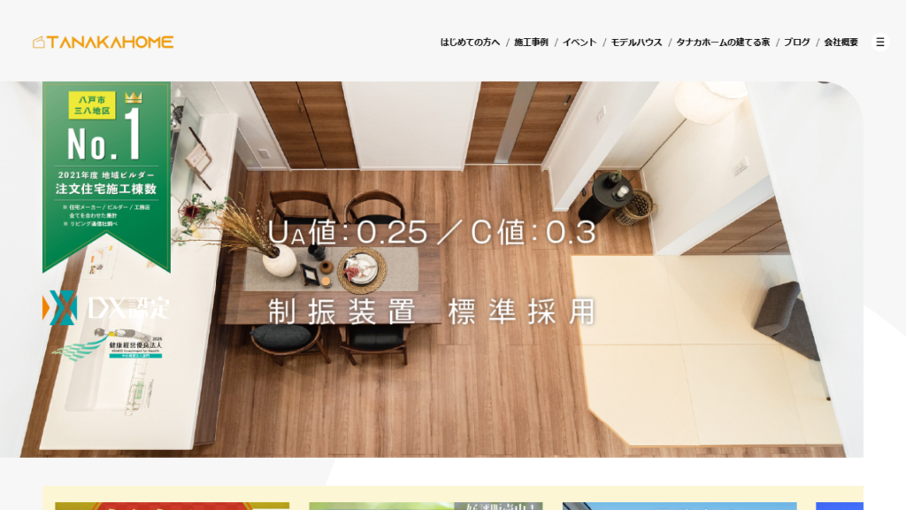 タナカホーム株式会社は、青森県八戸市に拠点を設置し、40年以上家づくりを続けてきた実績を持つ工務店。