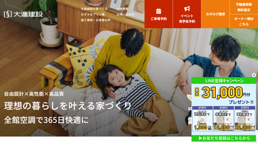 「幸せになる家づくり」をモットーとしており、耐震性・機能性・安全性すべてに妥協しない高品質な住宅を提供していることで定評があります。