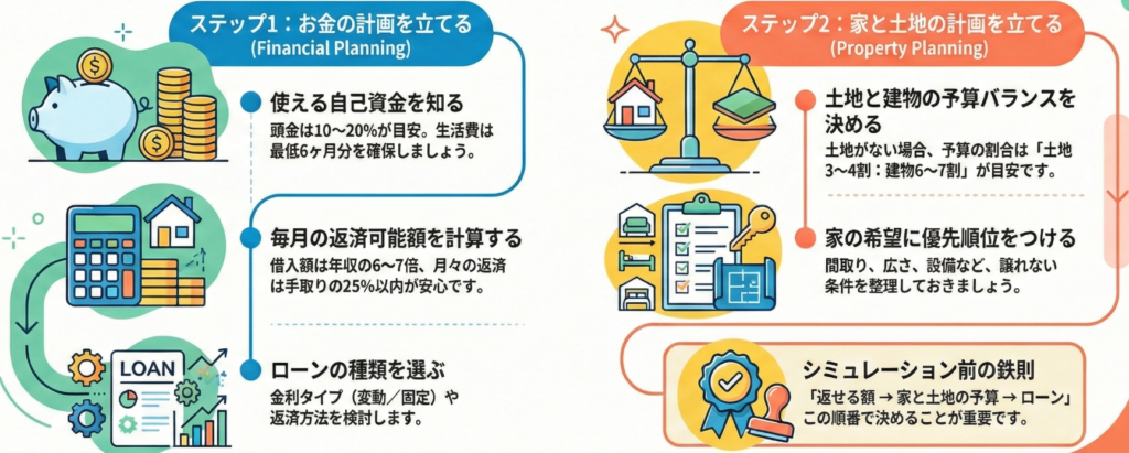 まずは、注文住宅の費用シミュレーションの前に済ませたいことをチェックしていきます。