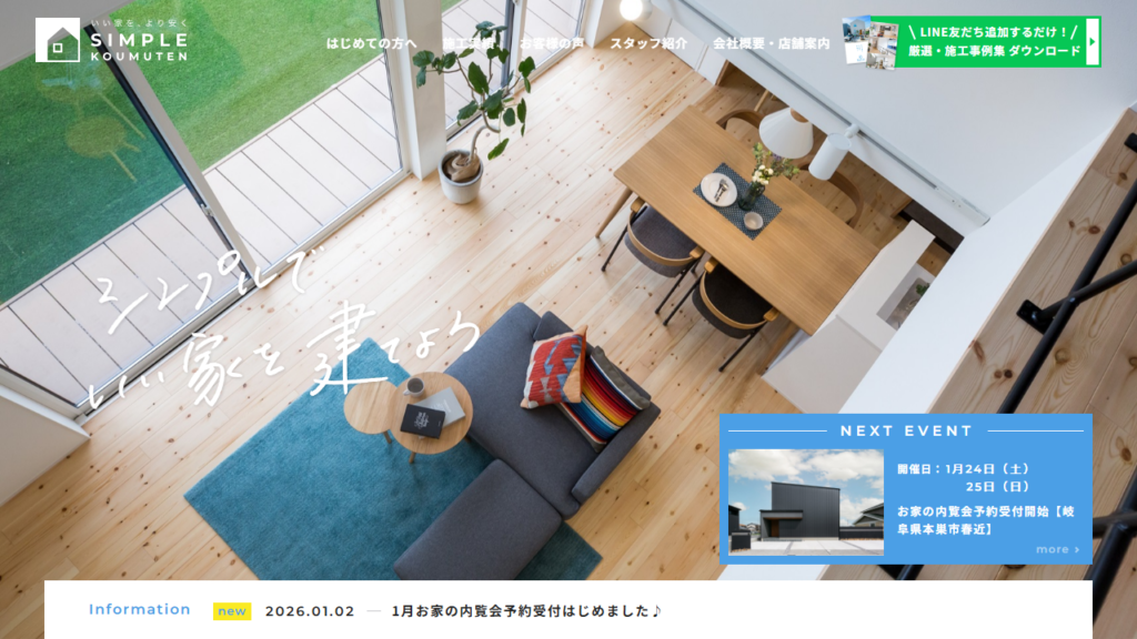 可児市を中心に岐阜・愛知エリアで多数の施工実績を持ち、モデルハウス見学や完成見学会も随時開催。