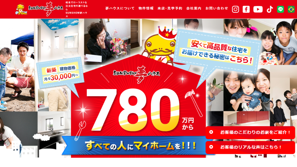 公式サイトで、1000万円台での価格表示を行っているハウスメーカーや工務店も多くあります。