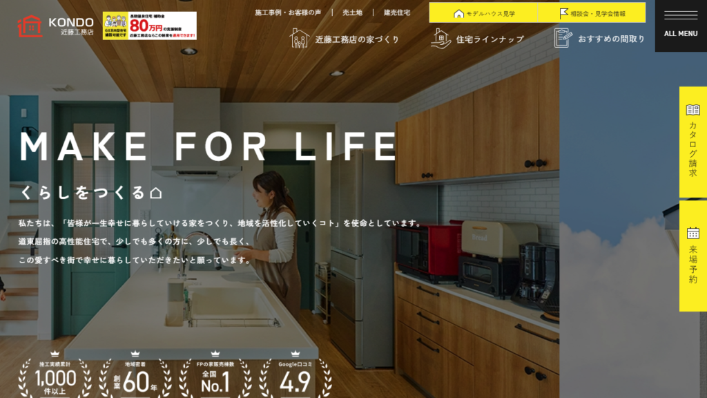 ホームページに掲載されている数多くの「お客様の声(アンケート)」では、施主の方々の喜びの声がたくさん並んでおり、さらにはGoogle口コミでも高い評価を得ています。