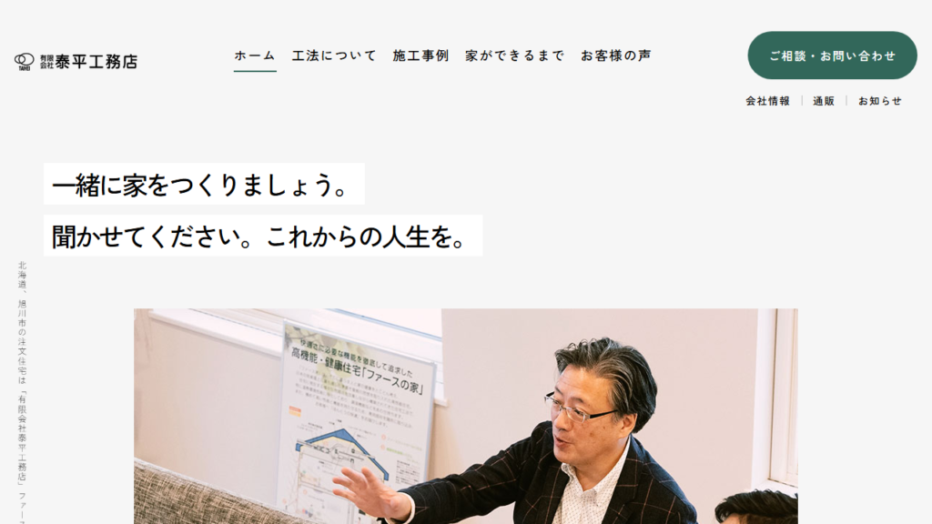 北海道旭川市に拠点を置く有限会社泰平工務店は、地域密着で新築注文住宅を手がける工務店。