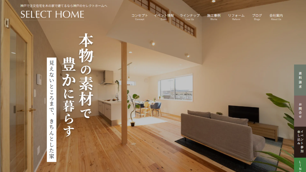 兵庫県神戸市に本社を構える株式会社セレクトホームは、平成7年創業以来、注文住宅の設計・施工やリフォーム、土地売買仲介まで幅広く手がけています。