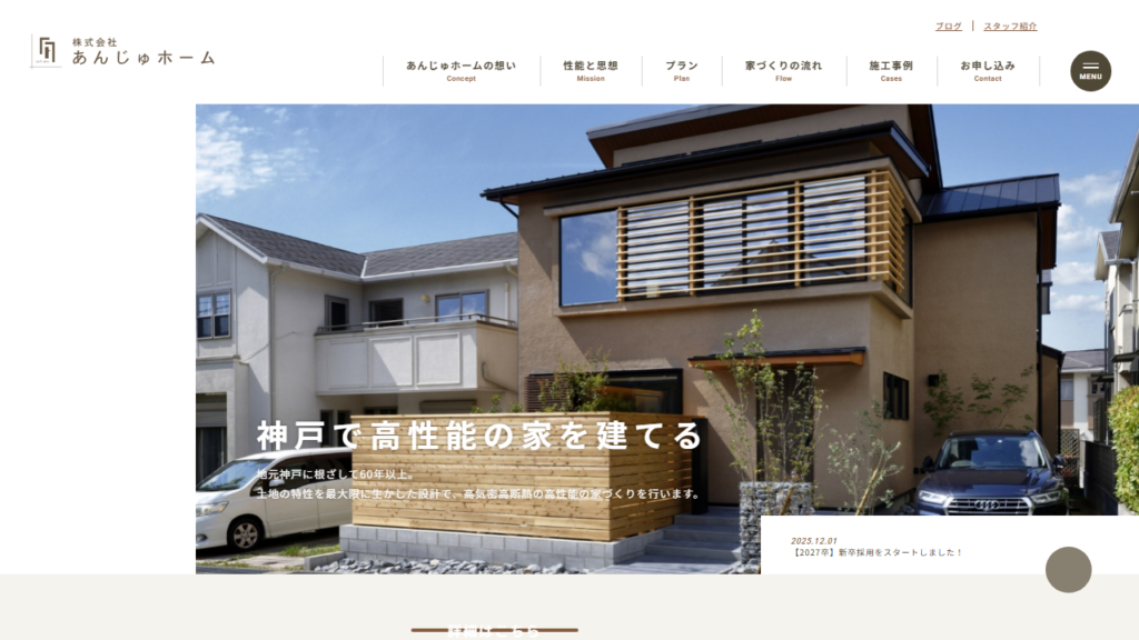兵庫県神戸市に本社を置く株式会社あんじゅホームは、1962年の創業以来、地元神戸を中心に60年以上の歴史を誇る工務店。