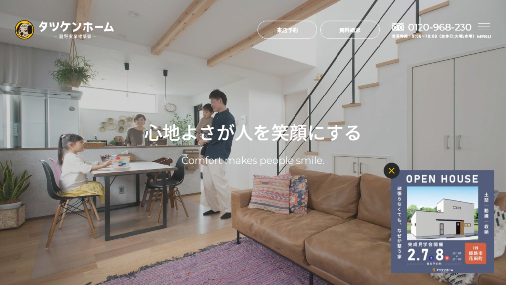 株式会社龍野実業建築家(タツケンホーム)は、兵庫県たつの市と姫路市に拠点を構える地域密着型の注文住宅会社。2003年(平成15年)に創業し、「心地よさが人を笑顔にする」を合言葉にした二人三脚の家づくりを大切にしています。