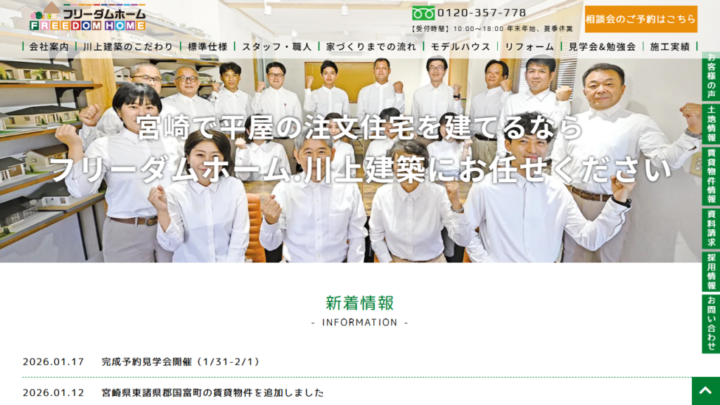 株式会社川上建築(フリーダムホーム)は、顧客の理想の平屋を叶える注文住宅専門の工務店です。