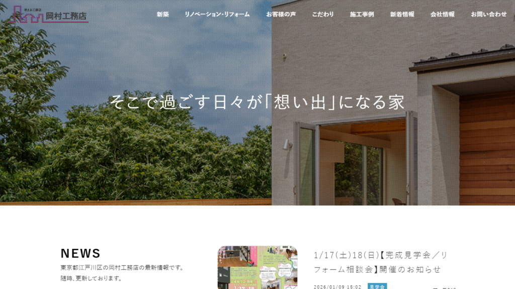 株式会社岡村工務店は、東京都江戸川区に本社を構える地域密着型の工務店です。新築注文住宅やリフォーム・リノベーションといった住宅関連事業を展開しています。