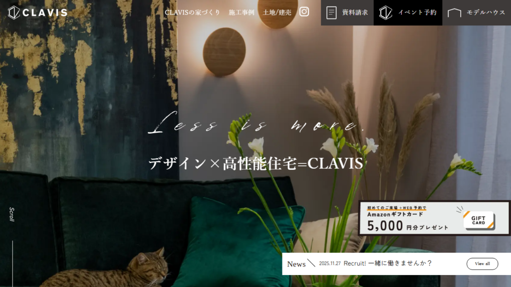 株式会社クラヴィスは、「デザイン・機能性・コスパすべてがちょうどいい」を基本コンセプトとしている工務店です。