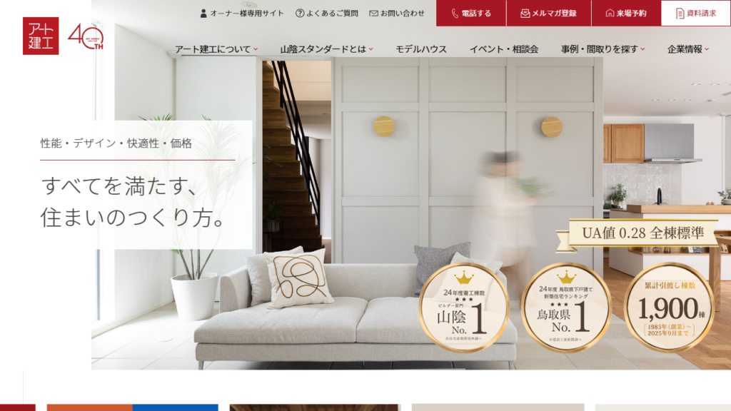 株式会社アート建工は、鳥取県・島根県を中心に活動し、年間200棟以上の家づくりを手がけている工務店です。