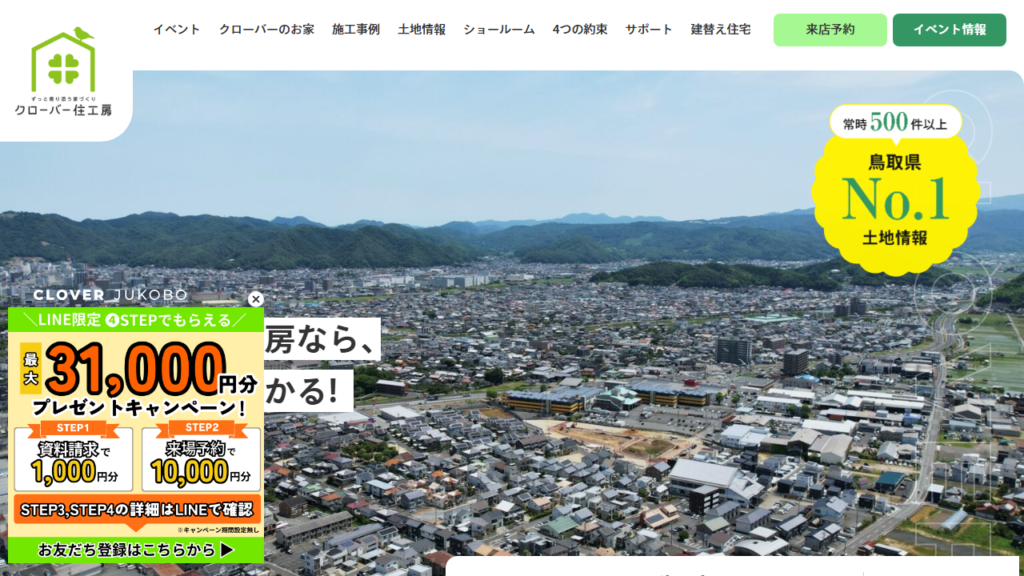 クローバー住工房 株式会社ヤマタホームは、鳥取県鳥取市、倉吉市、米子市に拠点を設置して活動している住宅工務店です。