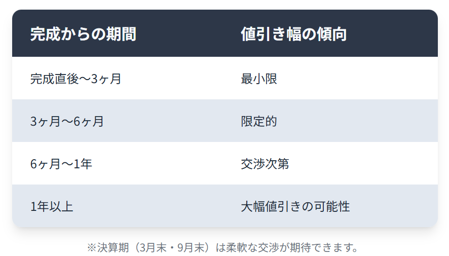 | 完成からの期間 | 値引き幅の傾向 |