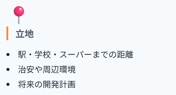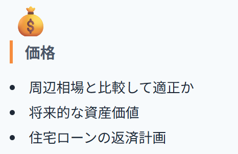 そして価格は、周辺相場と比べて割高・割安を見極めつつ、将来の売却や賃貸時の価値まで見通すのがポイントです。