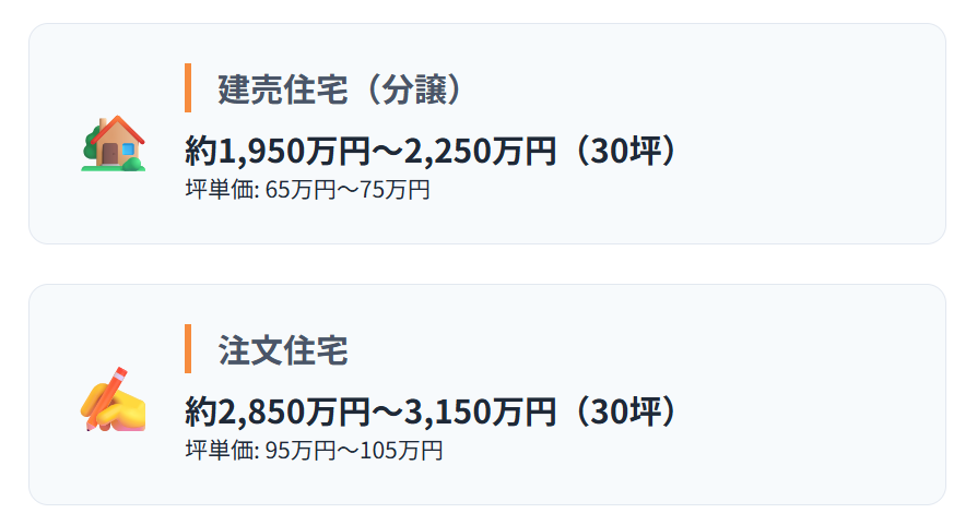 | 30坪の建物価格 | 約1,950万円〜2,250万円 | 約2,850万円〜3,150万円 |
