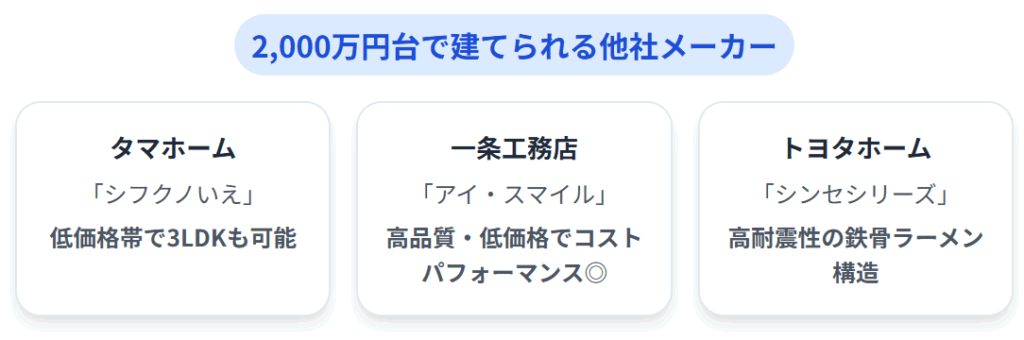 積水ハウス以外に2000万円台で平屋が建てられるハウスメーカー