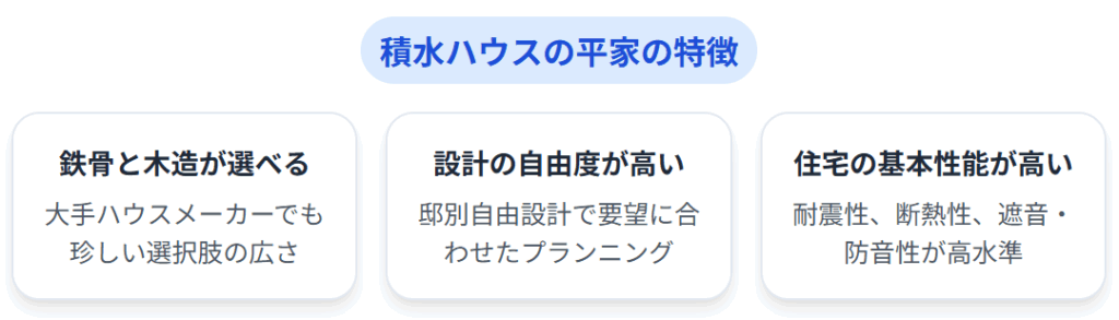 積水ハウスの平家は、鉄骨と木造の両方から選べるのが魅力的なポイント。