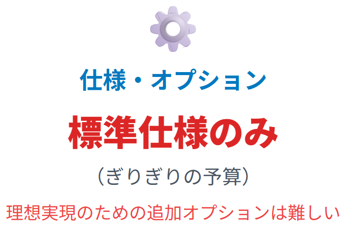 こだわりを実現するにはオプション料金が必要になるので、予算ぎりぎりだと積水ハウスの標準仕様しか選べず、思い通りの家づくりができません。