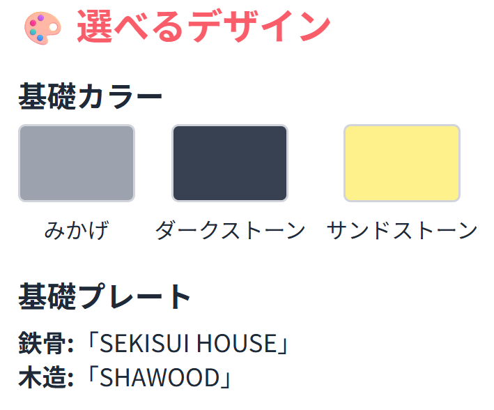 積水ハウスの住まいは、基礎のほか住宅の外壁の色も選択可能です。