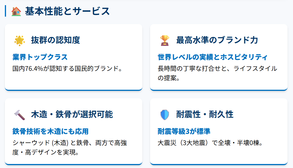 「ハイブランド系メーカー」とされるだけあって、住宅メーカー最大手の一角として、どの分野をとって見ても一流であると言えるでしょう。