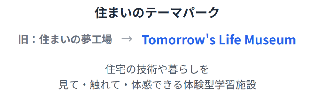 現在では、最新の住宅技術や暮らしの工夫を見て・触れて・体感できる、“住まいのテーマパーク”として運営されています。