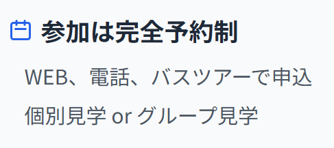 いずれも完全予約制となっており、工場見学への参加には、事前の申し込みが必要です。