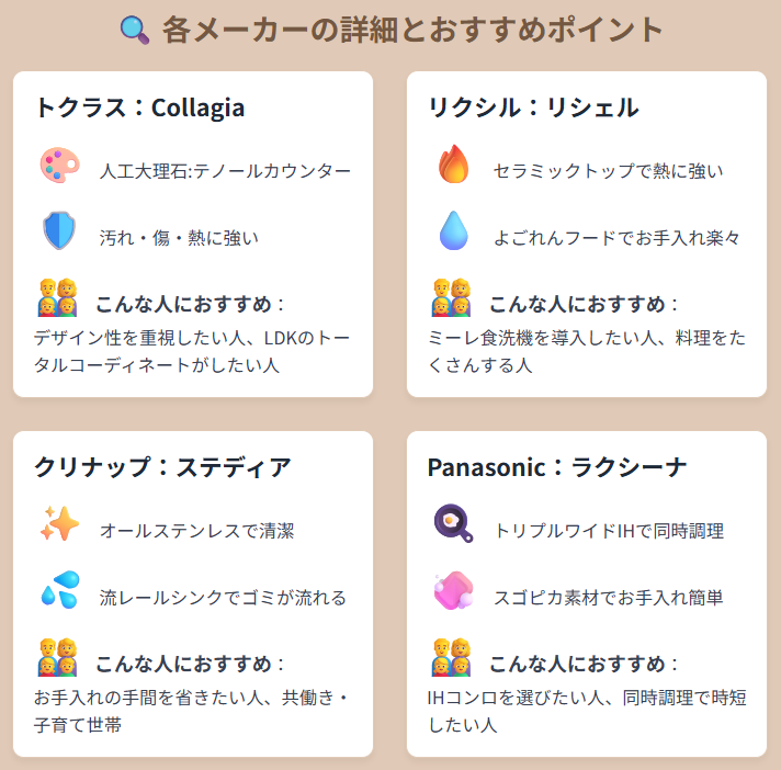 「キッチンハウスとか他メーカーも検討したいけど、どれがオススメなんだろう?」
