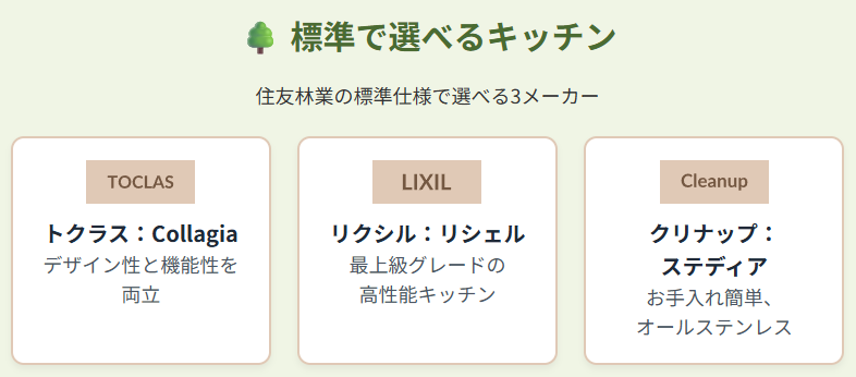 住友林業で選べるキッチンの整理(標準3社+提案3社)
