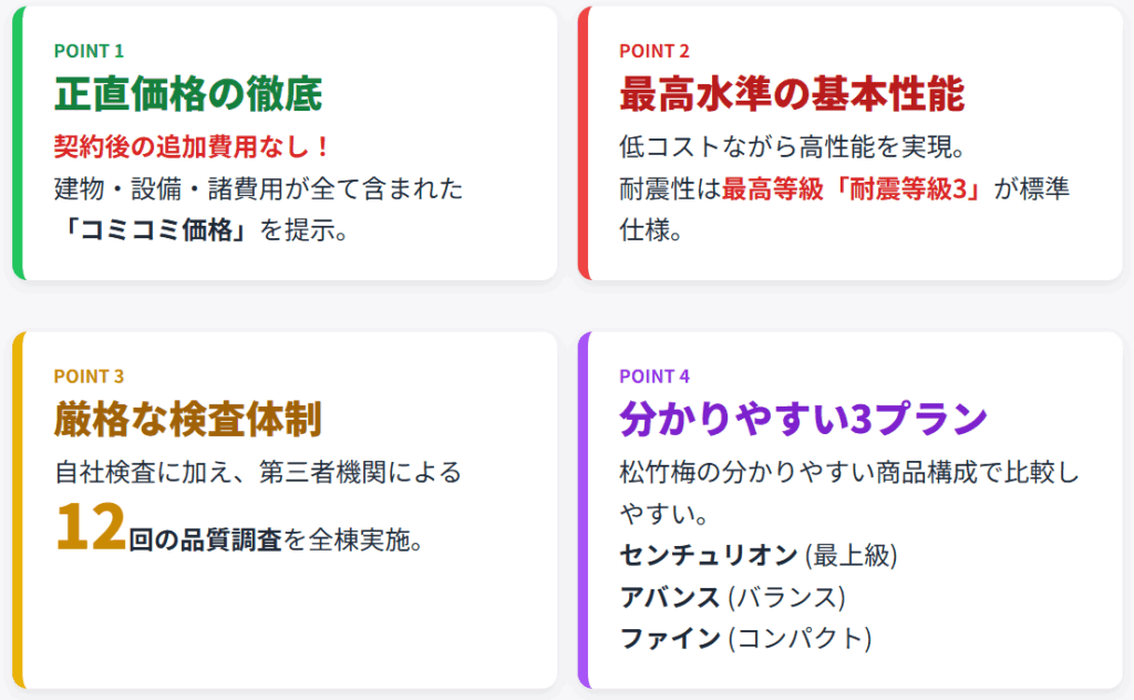 秀光ビルドの特徴は、「正直住宅」を掲げて、品質と価格ともにこだわっている点です。