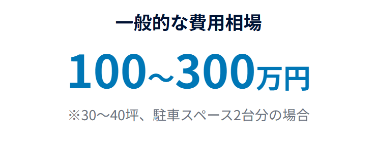 過去の施工事例を見ると、30~40坪の一戸建てで、2台分の駐車スペースのコンクリート舗装とブロック塀といった基本的な外構でも約100万円程度が必要とのこと。