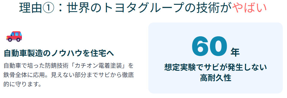 トヨタホームは鉄骨住宅を得意としていますが、鉄の劣化は錆(サビ)から始まるため、防錆対策が重要です。