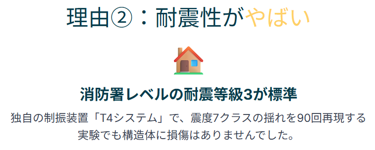 トヨタホームの鉄骨住宅は災害に強い特徴があり、標準仕様で耐震等級3をクリアしています。