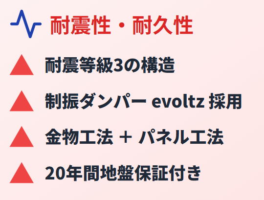 断熱性や気密性と言った快適な住環境に加えて、耐震性や耐久性の面でも安心して住める住まいづくりが実現できます。